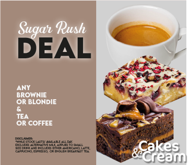 Disclaimer: While stock lasts/ available all day. Excludes alternative milk, applies to small size drink and includes either americano, latte, cappuccino, espresso, or english breakfast tea.